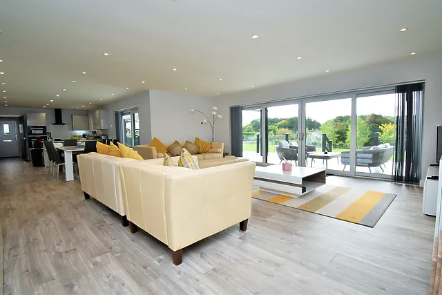 The accommodation boasts a contemporary open-plan living space, complete with a well-equipped kitchen and a cosy lounge area, ideal for family gatherings or socialising with friends.