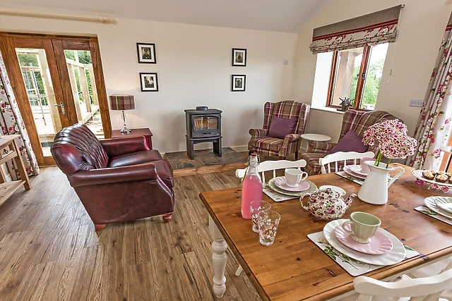 The Lodge is an elegant, modern log cabin in the village of Bedlam near to the historic town of Ludlow in Shropshire. With its open plan layout and outside covered barbecue area, this property is ideal for a family holiday.