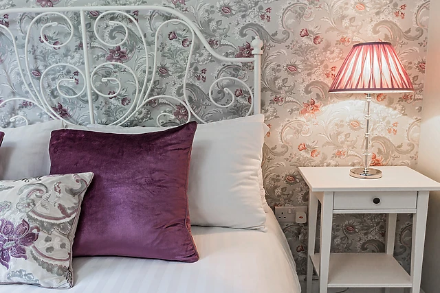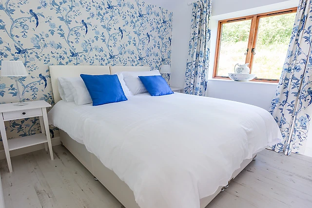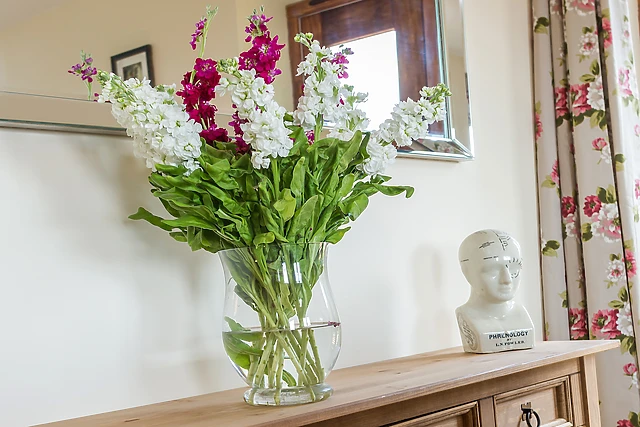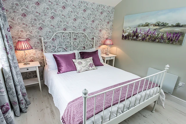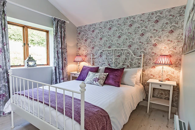 The open plan design really makes this property feel homely and comforting, as well as the comfortable seating and wood burning stove in the sitting room. Towards the back of the log cabin sits two large, fashionable bedrooms complete with dressing tables and delicate floral curtains and bed linen.