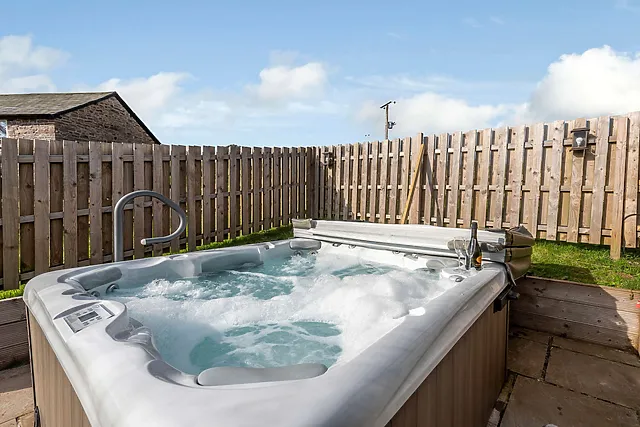 Yes, the accommodation features a private hot tub, which offers stunning views of the surrounding countryside. It's the perfect spot to relax and unwind after a day of exploring or to enjoy a romantic evening under the stars.