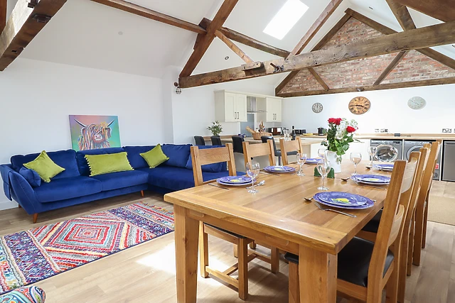 With a spacious open-plan living area, your group can gather for home-cooked meals or relax on the plush seating with the warmth of the electric fire. The cottage's pet-friendly policy means your furry friends can join in the fun, making it a home away from home for the entire family.