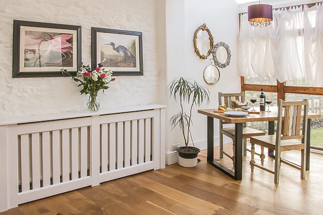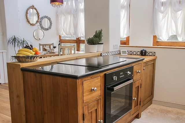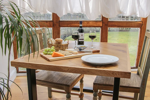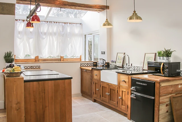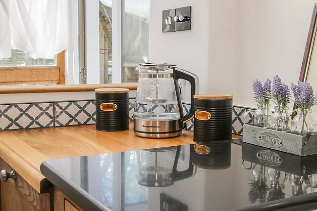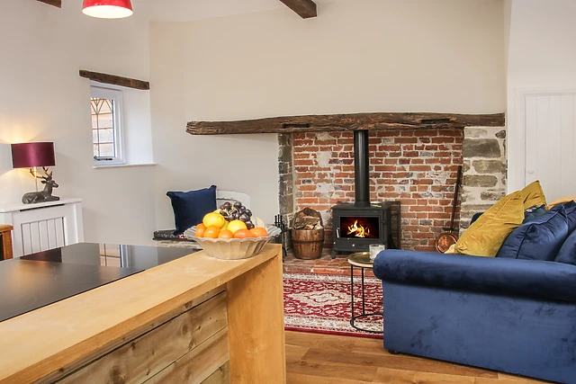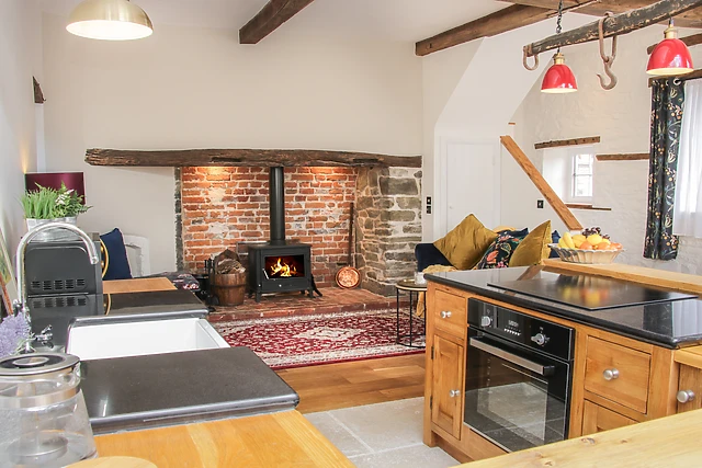 Step inside this homely cottage and discover a large open-plan living space, adorned with high beam ceilings and a magnificent inglenook fireplace with woodburning stove, an ideal space to relax and unwind as you cosy up on the blue velvet sofa and spend quality time with your significant other as you discuss all of your upcoming adventures exploring the area. Cross the beautiful oak floor to the quaint yet well-equipped kitchen and prepare a delicious dinner for two, to enjoy at the gorgeous wood dining table.