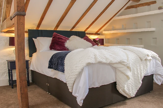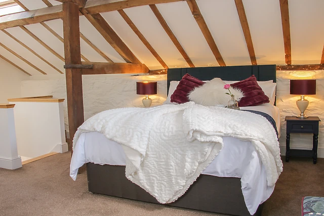 The original dovecote structure is a feature of the upstairs bedroom. Surrounded by the luscious open fields of the Shropshire Hills, an Area of Outstanding Natural Beauty, this restful abode offers the ultimate setting for a romantic retreat for two.