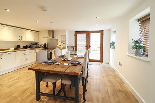 It creates the perfect setting for socialising and indulging in culinary delights with your loved ones. Settle down for the evening and unwind with a leisurely seat on the plush corner sofa, warming the room with the electric fire as you enjoy a movie marathon under the rustic exposed wooden beams that decorate the ceiling above, before heading outside to end each day in style with a luxurious soak amongst the bubbles in the hot tub under the starry skies above.