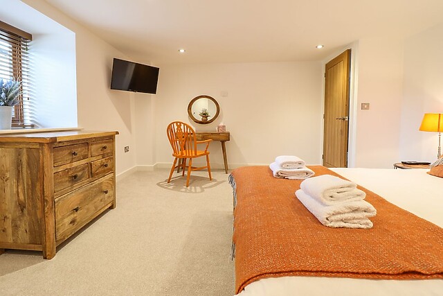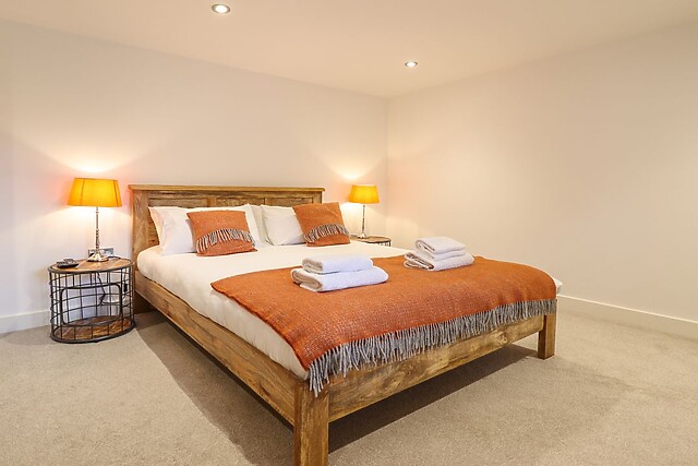 As the day draws to a close, prepare for bed with an invigorating rinse in the contemporary family shower room, before retiring to the twin bedroom, fabulously-appointed with high-vaulted ceilings. Completing the ground-floor is a spacious king-size bedroom, ideal for guests with limited mobility, and fit with it's own TV so you can drift off to the sound of your favourite show.