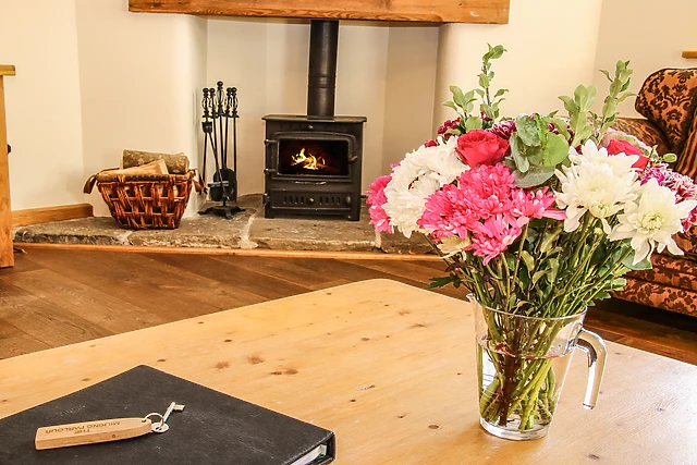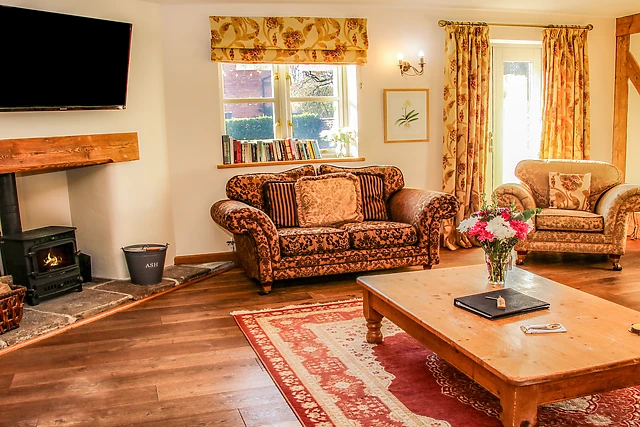 After exploring Shropshire return to The Milking Parlour and throw a log on the woodburning stove. Note: Cottage is next to Refs.