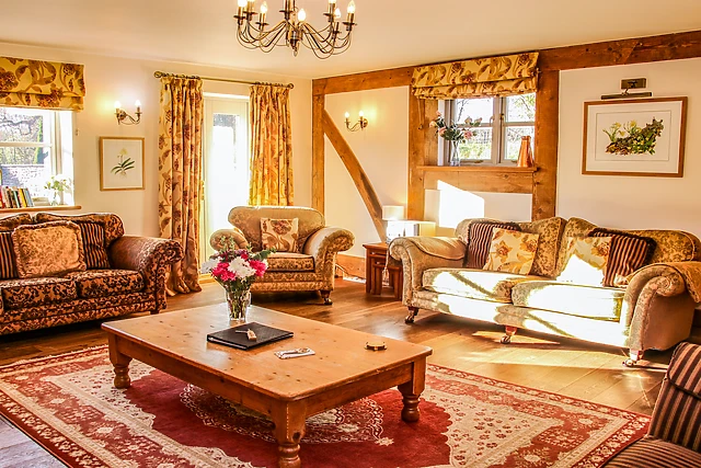 In some of the bedrooms, you'll find an exposed brick wall adding a touch of rustic charm and wooden beams adorn the bedrooms that aren't on the ground floor. Step outside into the garden where a patio awaits, complete with furniture and a bubbling hot tub, perfect for soaking under the stars and enjoying the peaceful surroundings of Shropshire.