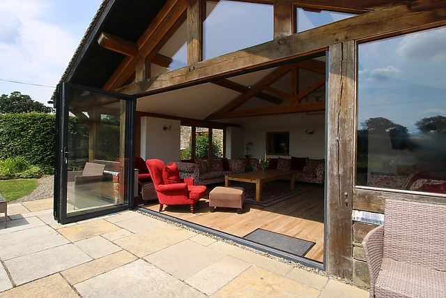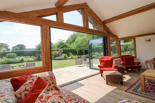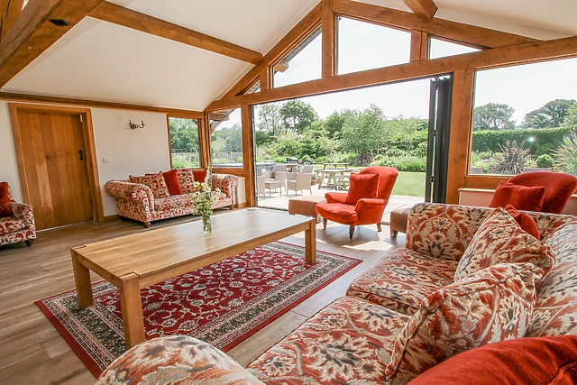 The large sitting room overlooks the astounding garden and countryside beyond, whilst being complete with contemporary furniture, underfloor heating, bi-fold doors and a 50'' Smart TV; it makes the perfect chill area. The downstairs is complete with a bright and airy double bedroom and an en-suite shower room, as well as a stylish wet room, finished to an excellent standard in keeping with the property.