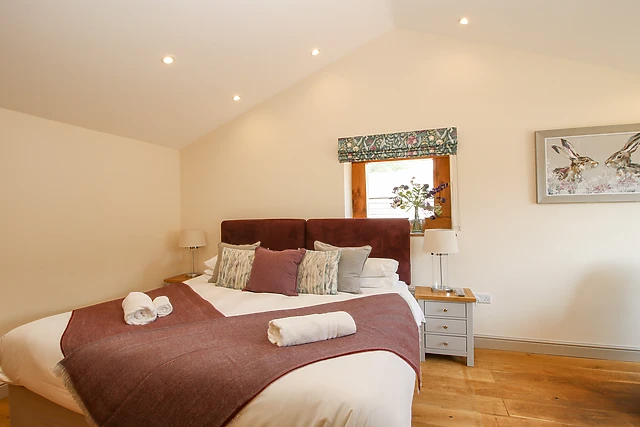 The upstairs reveals four stunning bedrooms with charming decoration and views towards the stunning scenery. The vaulted ceiling with exposed beams and comfortable beds really make this a family and friends cottage.