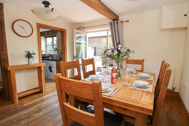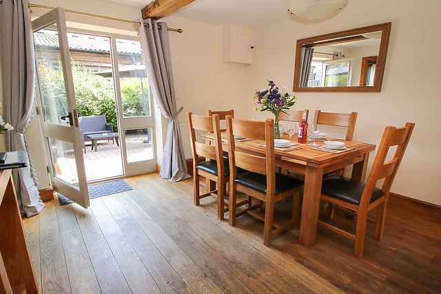 Outside, the patio area beckons you to enjoy the fresh countryside air and stunning views, with comfortable furniture for lounging and a luxurious hot tub for indulgent soaks under the starry sky. Enjoy your countryside stay at The Olde Cowshed.