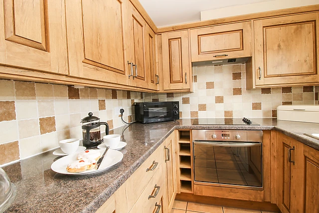 Adjacent is the dining room, where a wooden dining table seating four guests invites you to gather for meals and quality time together. The homely kitchen is equipped with all the essentials for preparing delicious dishes, while the wooden flooring throughout adds a touch of warmth and charm to the lodge.
