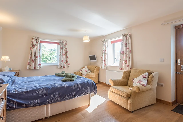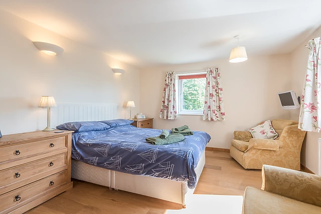The Schoolhouse Brewhouse is ideal for ground-floor living and provides light, airy bedrooms, one of which with a balcony and en-suite, and an inviting, open-plan living area where you can cosy up in front of the fire. Outside, the apartment has a pretty lawned garden, perfect for dining alfresco, and a fabulous hot tub and summerhouse, which are ideal for relaxing after a busy day exploring the area.