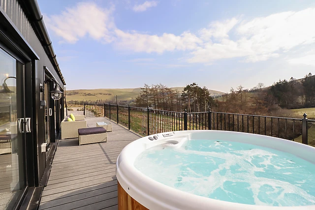 Yes, the property features a luxurious hot tub, offering guests a relaxing soak while enjoying the stunning views of the Welsh countryside.