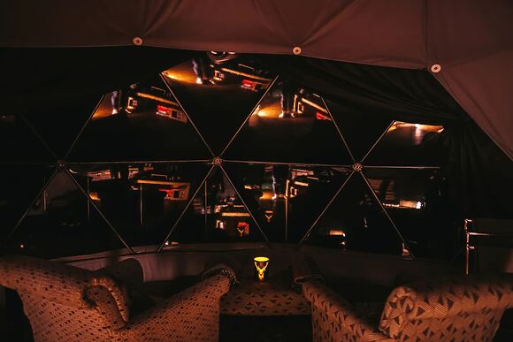 The dome accommodates a maximum of 2 guests. It has one bedroom with a 5ft kingsize bed and one shower room.
