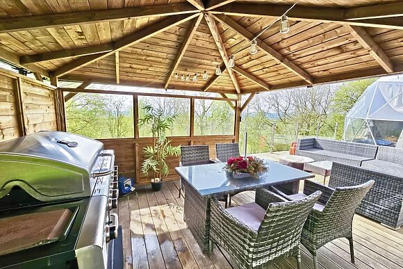 The Star Dome suits couples wanting real seclusion. The private wood-fired hot tub a woodburner with fuel included and a gas barbecue make this a genuinely special stay.