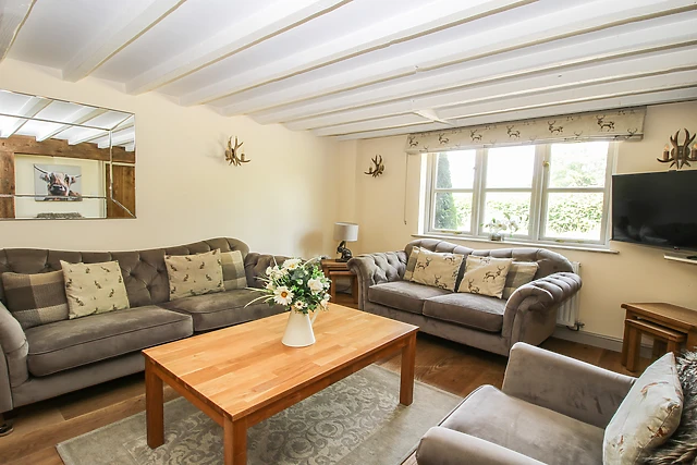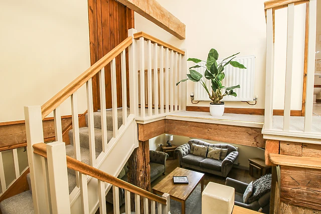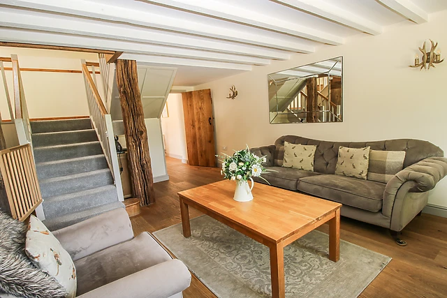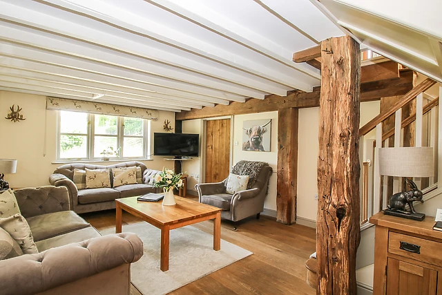 Step inside The Wain House and be greeted by a beautifully decorated sitting room, complete with plenty of seating to relax and unwind. Admire the mounted TV while enjoying the exposed wooden beams and pillars that give the room a rustic charm.
