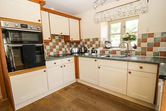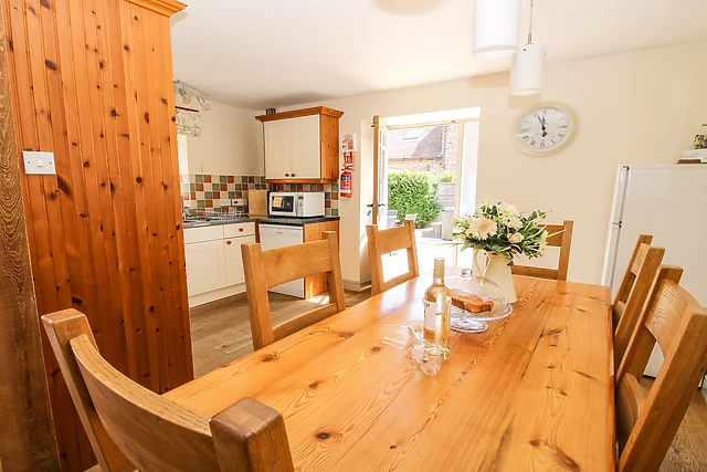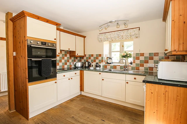 Next, make your way to the spacious kitchen/diner, where you will find an integrated oven and grill, perfect for whipping up delicious meals for your group. Gather around the dining table, which comfortably seats six guests, and enjoy a meal together in this homely setting.