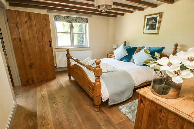 As you explore the rest of the abode, you will notice wooden accents and beams in the bedrooms, adding a touch of warmth and character to the space. Walk on the wooden flooring throughout, feeling the natural elements underfoot.