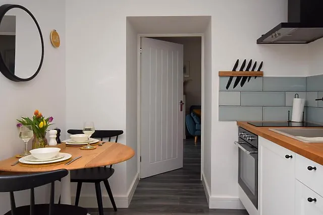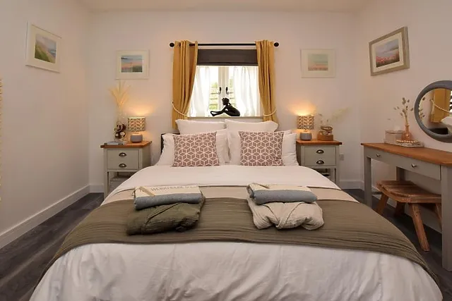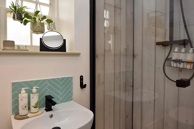 You enter a colourful modern kitchen and dining space which has been fully equipped to ensure you can rustle up a romantic meal for two. To the right of the kitchen is where you'll find the shower room and WC, complete with beautifully smelling toiletries.