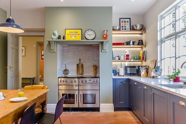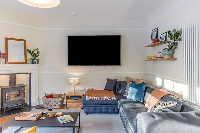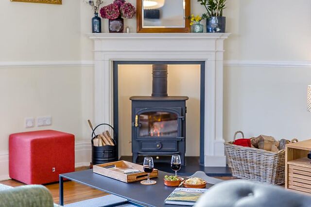From here, it’s a seamless move into the adjacent main social space of the property, a lovely living room with a wood burner, large TV, choice of comfortable seating and patio doors opening onto the garden. Enjoy lively conversations and tasty home-cooked cuisine in the formal dining room off the entrance hall – with a large bay window and a wood burner, this is a great space for group gatherings.