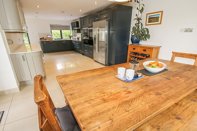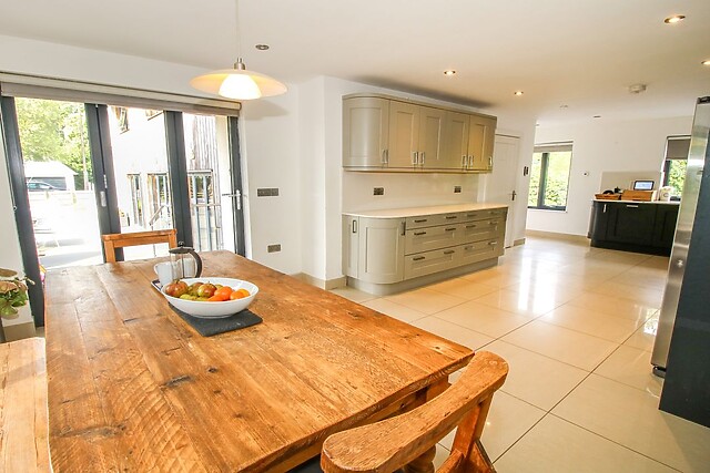 Adjacent to this, you will find a handy utility room housing a washing machine and tumble dryer, perfect for those longer stays. The sitting room, complete with a Smart TV, offers a warm space to unwind after a day of exploring, with bifold doors opening onto the garden, seamlessly blending indoor and outdoor living.