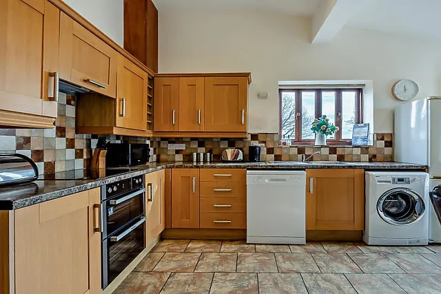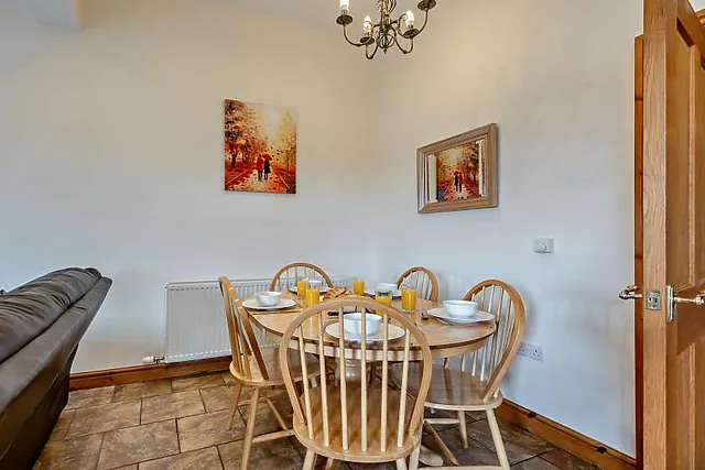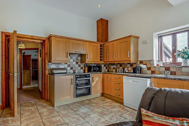 A warming wood burner effect fire provides a cosy ambience in cooler weather, making this a great year-round choice. The kitchen has everything you need to rustle up some family favourites, and the wooden dining table is ideal for meals, card games or planning adventures.
