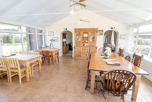 The main house boasts a bright conservatory, a fully equipped kitchen, and a sitting room with a Smart TV, perfect for relaxing evenings in. Kilnhurst Log Cabin offers additional privacy and convenience with its own kitchenette and en-suite bedrooms.