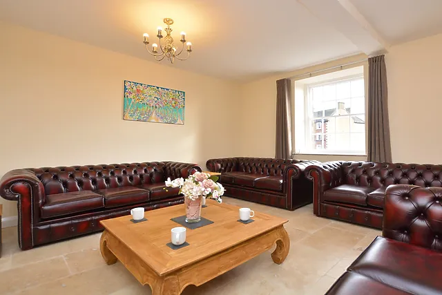 Indulge in the comfort of the spacious lounge, complete with sumptuous leather chesterfield sofas and a Smart TV, perfect for unwinding after a day of exploration.
