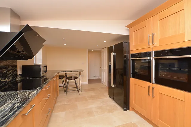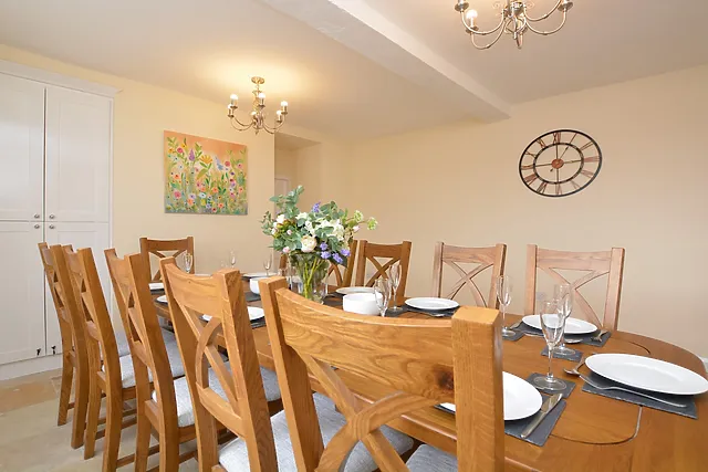 The cottage's kitchen is a culinary dream, featuring two electric ovens, induction hob, and a breakfast bar for casual dining.