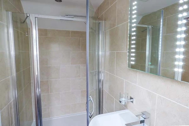The double room has an en-suite shower room and there is also a bathroom on the landing as well which can effectively serve as an en-suite for the second bedroom. As with the rest of the property the owners have spared no expense on the outside of the cottage.