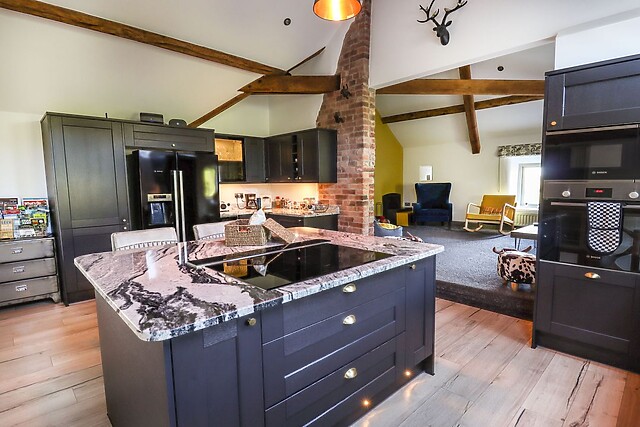 Spend your evenings in the open-plan living room, with a lovely L-shaped sofa to curl up on, and a woodburning stove for that extra bit of warmth. The kitchen has all the appliances you could need to cook up a storm for the whole family, with a large dining area for family gatherings.