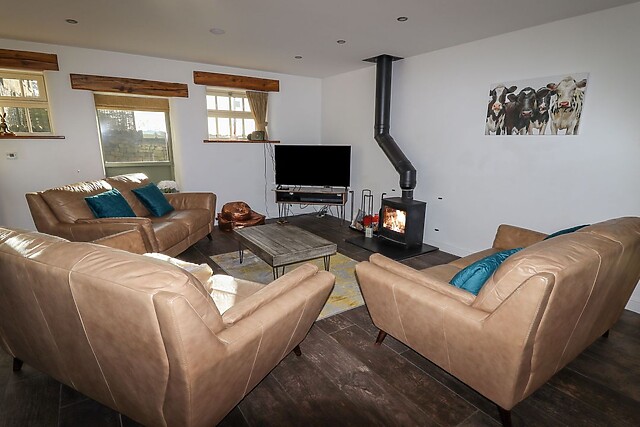 Pastures Barn is a beautifully-presented barn conversion situated on the outskirts of Leek in Staffordshire, boasting lovely countryside surrounding. Entering the property, you will be greeted by a spacious sitting room, with plenty of seating to relax and unwind with your loved ones in front of the toasty woodburning stove.