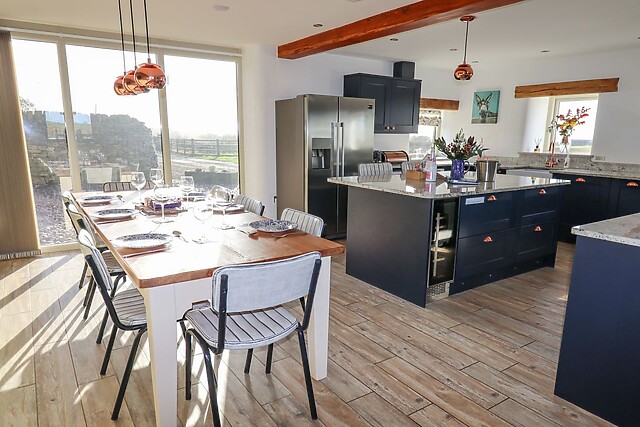 The open-plan kitchen/diner has been equipped with everything you need to cook up a storm for the whole family to enjoy. Retire to one of the three well-presented bedrooms, all with their own TV's they comprise of two king-sizes, one with an en-suite walk-in shower, and one twin with zip/link features, able to accommodate all types of groups wishing to stay here.