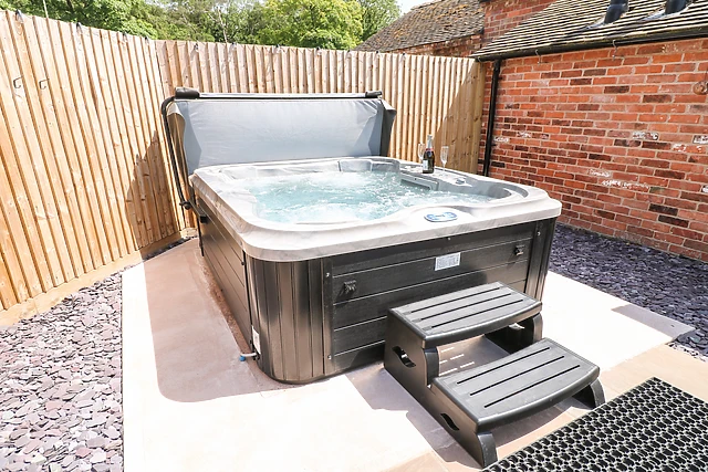 Yes, the accommodation boasts a spotless hot tub in the private, enclosed garden, providing guests with a relaxing space to unwind and enjoy the serene surroundings.
