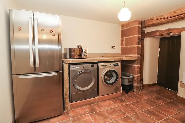 Begin your getaway by parking in the off-road parking before stepping across the threshold into the heart of the home, where a welcoming sitting room awaits. Unwind on the plush leather sofas and warm your feet by the woodburning stove.