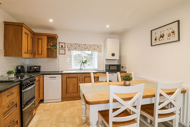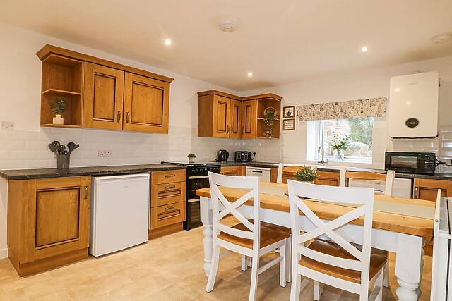 The family bathroom is well-appointed with a bath, an overhead shower, a basin, and a WC, ensuring everyone can prepare for the day at their own pace. Moving through the property, you will find a kitchen/diner, where you can gather to enjoy home-cooked meals and plan the day's adventures.