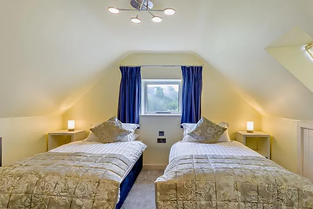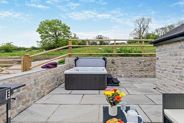 Upstairs, you’ll reach a twin zip-and-link bedroom with an en-suite. Outside is a private patio and garden with furniture, a BBQ and a hot tub.