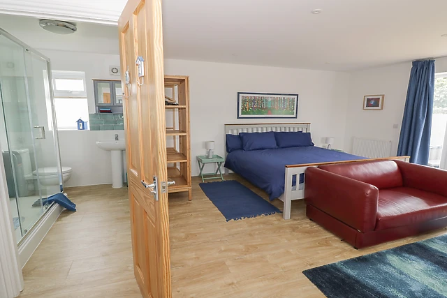 Accommodating up to four guests, this detached property boasts two elegantly furnished bedrooms, each with its own en-suite walk-in shower, ensuring privacy and comfort. The ground-floor bedroom features a sumptuous super-king-size bed, providing an accessible option for guests with limited mobility.