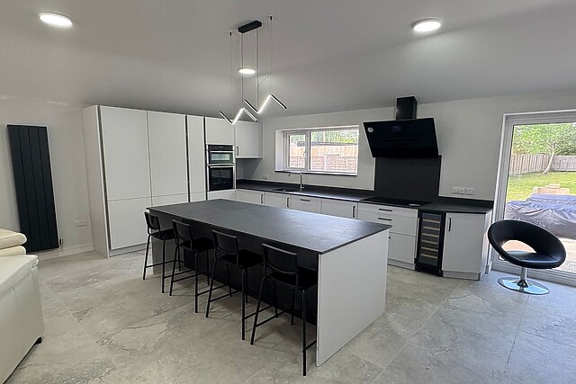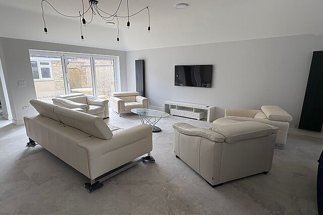 When stomachs start to rumble, move to the fully-equipped kitchen area. Use the electric oven and hob to cook something delicious before plating it up on the large dining table.