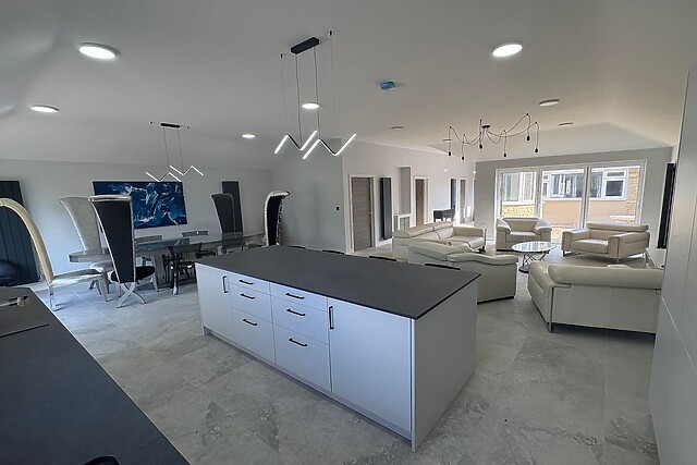 Step into your new holiday base and enter the open-plan living area. Find a series on the Smart TV at your disposal and settle in.