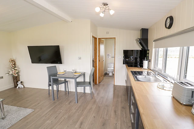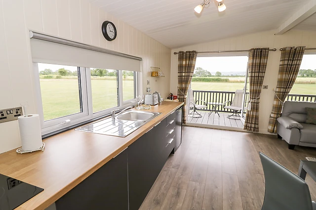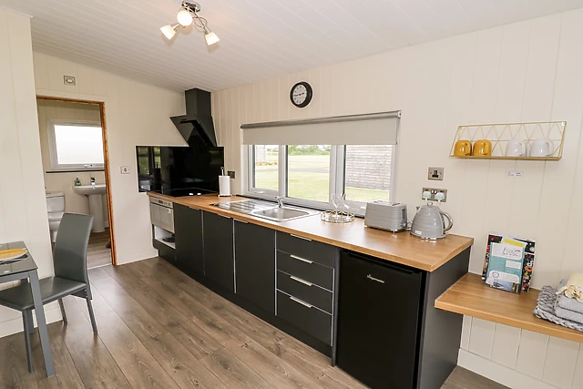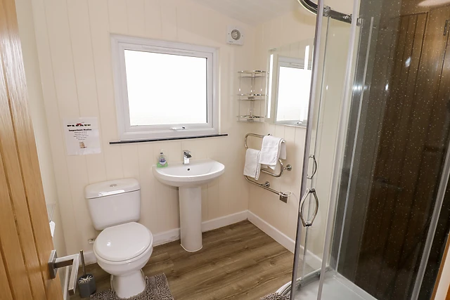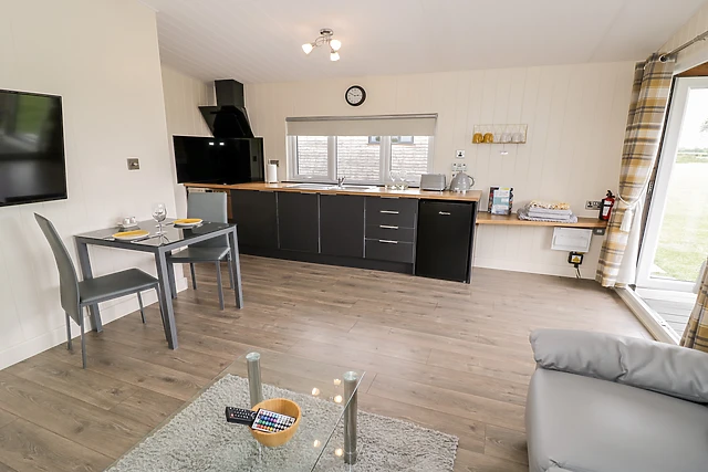 The lodge is all-ground-floor, including a ground floor bedroom and bathroom, making it accessible for guests with limited mobility.