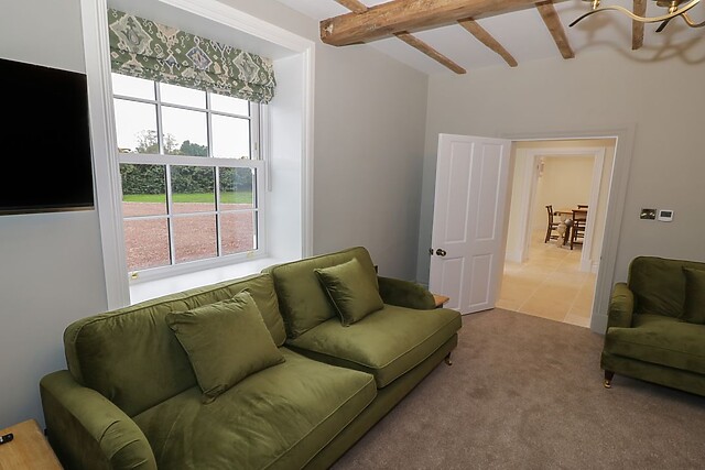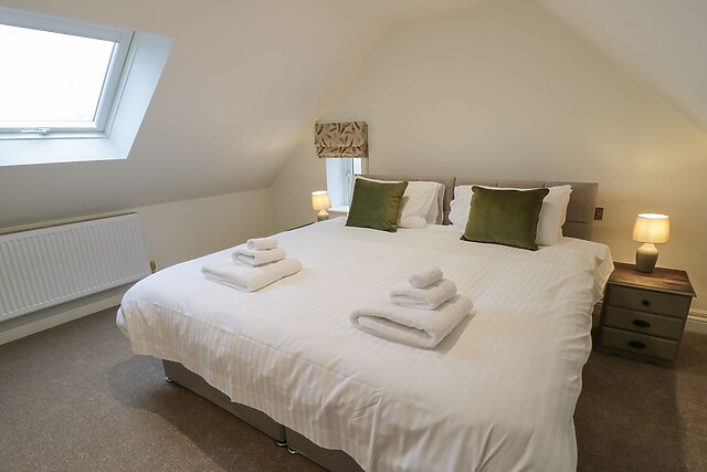 When the night beckons, wrap up your dinner party chatter and make your way up to the first and second floors, where six enchanting bedrooms await. On the first floor, you'll find a stunning super-king-size room, complete with charming exposed brick walls and rustic ceiling beams, another super-king-size with a Smart TV and en-suite bath and walk-in shower, as well as a king-size room.