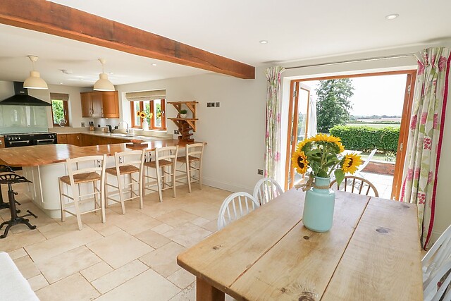 Surrounded by rolling countryside and boasting its own private wrap-around garden, this charming property blends rustic character with modern comforts. Step inside to discover a spacious open-plan kitchen and dining area, ideal for preparing and sharing your favourite holiday meals.