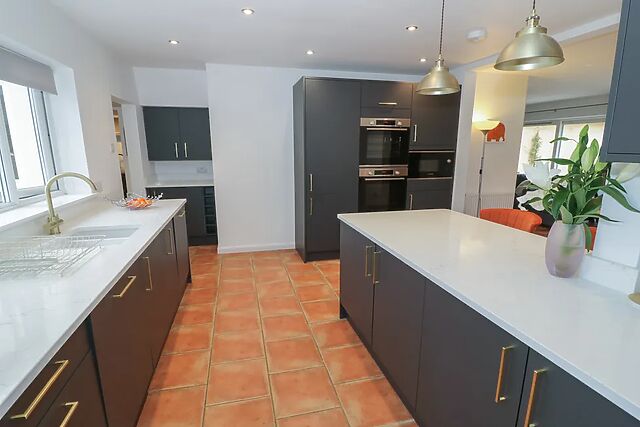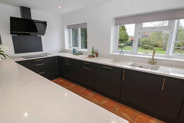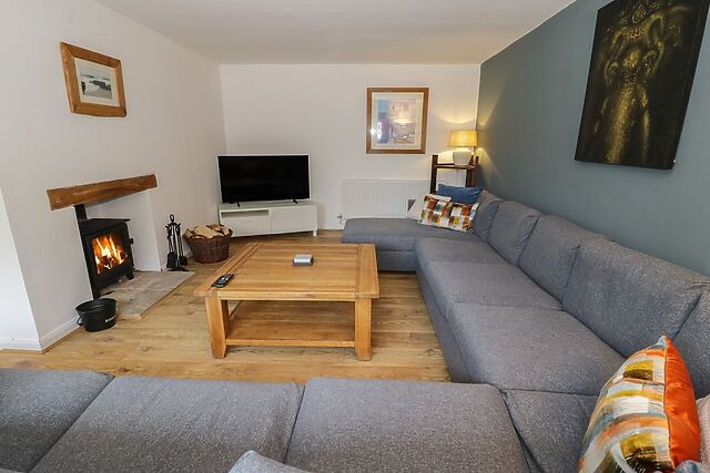 Whether you're preparing breakfast at the breakfast bar for two or gathering around the large dining table, this space invites conversation and connection. The sitting area flows seamlessly from the dining space, where a large corner sofa invites you to stretch out in front of the Smart TV, while the woodburning stove casts a gentle glow on cooler evenings.