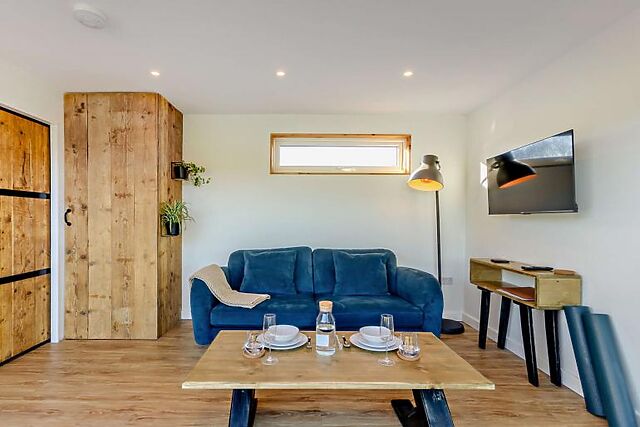 The accommodation sleeps two guests in a king-size bedroom, complete with a modern kitchen, a walk-in rainfall shower, and underfloor heating throughout.