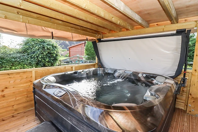 Yes, the property boasts a luxurious hot tub, perfect for guests to relax and unwind while enjoying the picturesque views of the surrounding countryside.