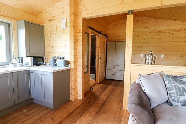 The accommodation includes a well-equipped kitchen area with a hob, microwave, toaster, and kettle, catering to guests' self-catering needs during their stay.