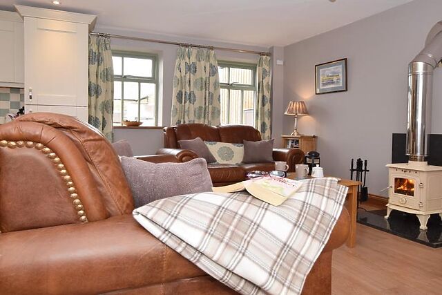 Inside, you'll find a spacious and bright open-plan living area, complete with modern amenities and a cosy woodburner, ensuring your stay is comfortable and relaxing. The private enclosed patio provides an intimate space for alfresco dining or simply enjoying the fresh country air.