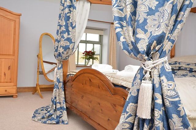 The cottage comfortably sleeps two, offering a sumptuous four-poster bed for a restful night's sleep.