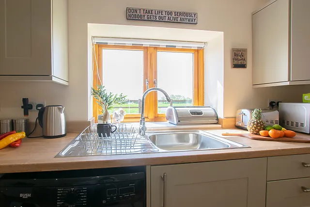 The cottage is equipped with an electric oven, gas hob, microwave, fridge, washing machine, and Wi-Fi, alongside a welcoming hamper for a comfortable stay.